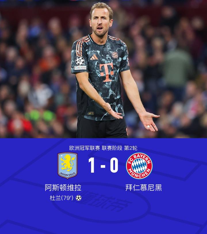 欧洲冠军联赛:阿斯顿维拉主场力克拜仁慕尼黑